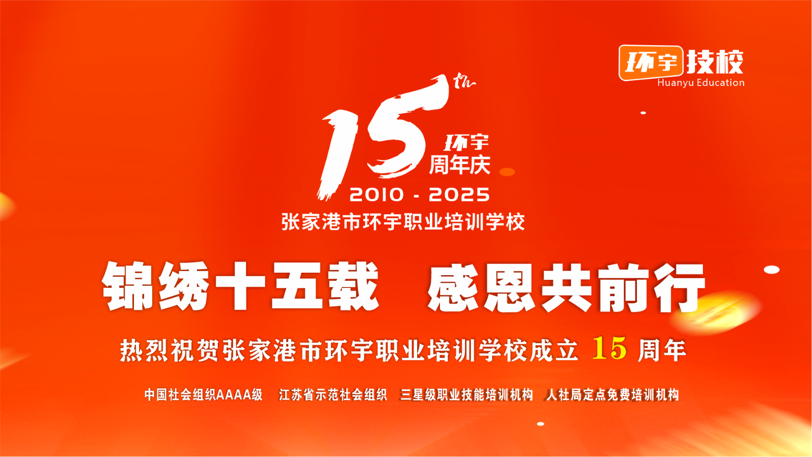 时光荏苒,初心不改。2025年10月28日,张家港市环宇职业培训学校将迎来建校15周年。十五载春华秋实,学校始终秉持"培训一人、就业一人、幸福一家"的办学宗旨,在职业教育领域深耕不辍,谱写了"技能改变人生"的动人篇章。